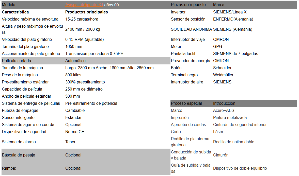- •Velocidad de envoltura ajustable